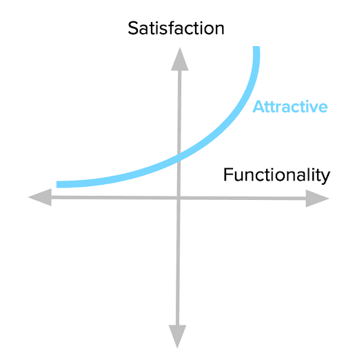Attractive (A): Delightful features exceeding expectations (Like it functional, Don't miss it dysfunctional).
